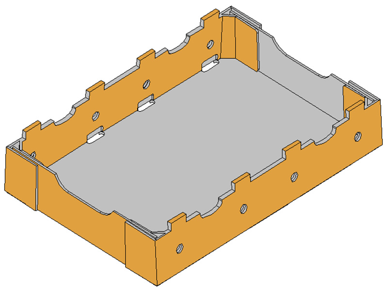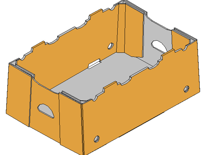 - 盒型: P84箱型是比較典型的開口箱之一,結構強度好,成本適中,廣泛的應用于農產品的果蔬包裝中。