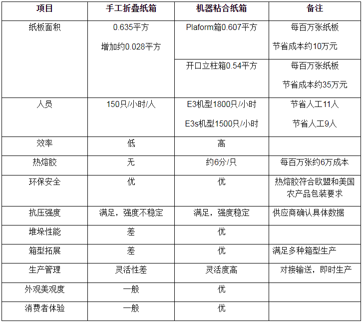 設備可以生產開口立柱箱(open column box)紙板面積為:0.54平方米